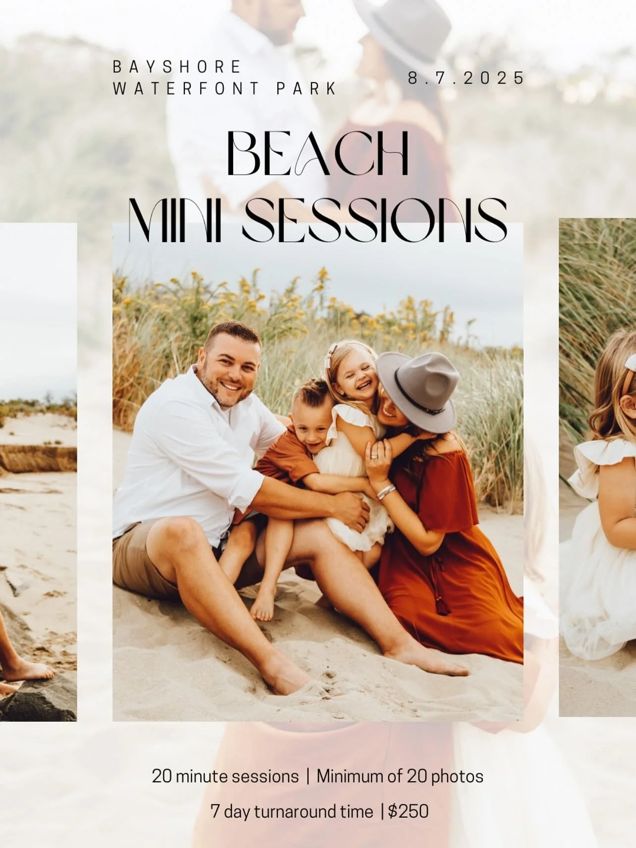 View fullsize ✨ Due to popular demand - TWO NEW BEACH MINI SESSION DATES ADDED! ✨ Don’t miss your chance to capture your family in the magic of golden hour — warm sunsets, salty breeze, and smiles all around. πŸ“Έβœ¨