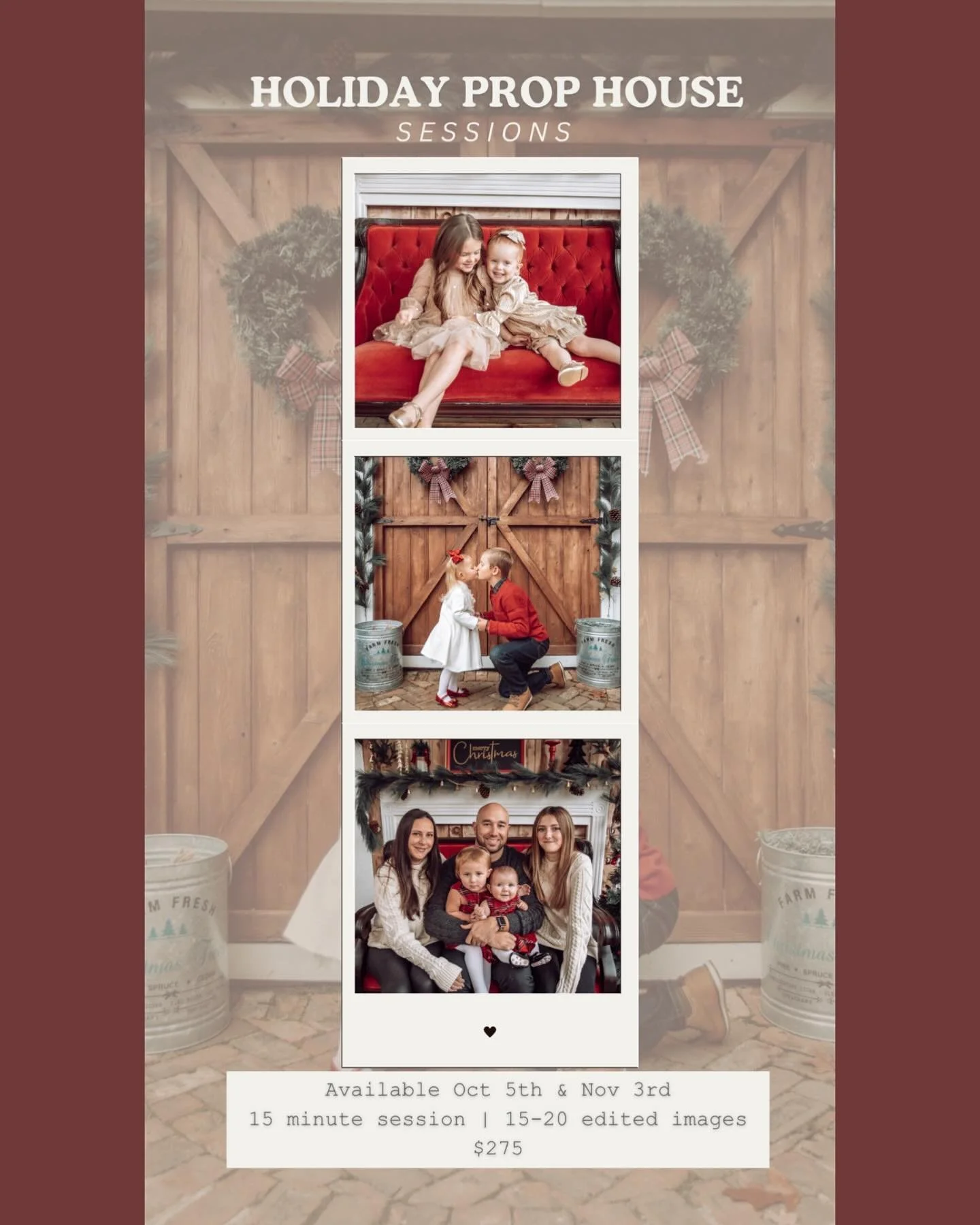 View fullsize NOW BOOKING ‼️ Our 2024 Holiday Mini Sessions are up and available! This year, we will be offering eight different dates throughout October and November at four beautiful locations. Message us today to secure your spot!